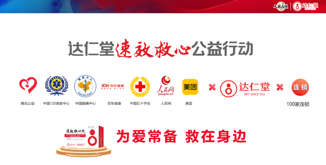 “达仁堂速效救心公益行动”,以“黄金4分钟急救圈”搭建全国急救网络,整合多方资源,构建“预防+急救”院前健康服务体系,彰显品牌社会责任。